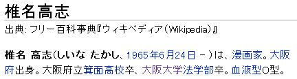 で、結局何故椎名先生の「阪大法学部卒業」説がこんなに広まったのかについては、そんな学歴を持っていてもおかしくないくらいに椎名氏の知識の広さが読者から高く評価されているためである、ということなのでしょう。